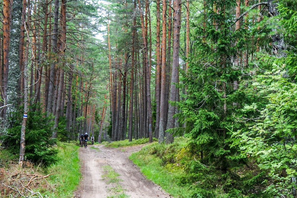 The day started with a ride through one of Lithuania’s national parks, through forests with many lakes. After 20 miles of so we turned off the roads and into the woods on a track through the park. This got sandy and the pace was ramped up to keep floating through it, and to avoid the swarms of huge horseflies.