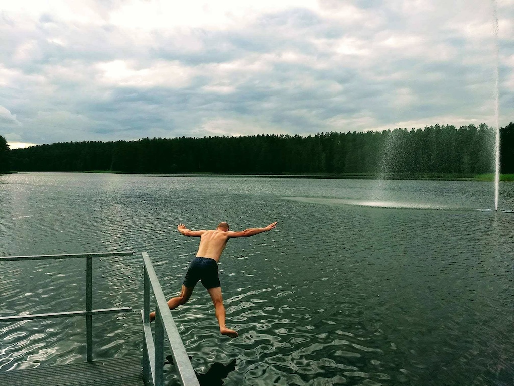 We stopped in the amusingly named Vasaginas for lunch (which was full of stolen UK registered cars) then headed into what one of the locals we met whilst swimming in a lake called “the redneck area”. We were now on Eurovelo route 11, but there’s absolutely no cycle route signage in Lithuania. The roads here were big but quiet and we blasted along to our destination- the town of Ignalinas. Apparently we were the first British people to have visited the town’s only hotel for two years.