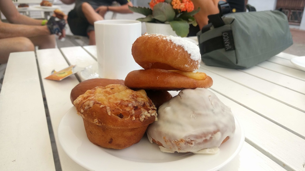 The CX and gravel bikes managed sort of OK, drifting around with the weight of the bags, but the road bikes just got bogged down and we bailed back onto the main road. Here, the cycle route reappeared as the old road, shut to vehicles and following the new EU funded main road. We arrived at our s****y guesthouse in blazing sunshine, went for a dip in the sea before a sauna and hot tub session and watched the sunset from the beach.