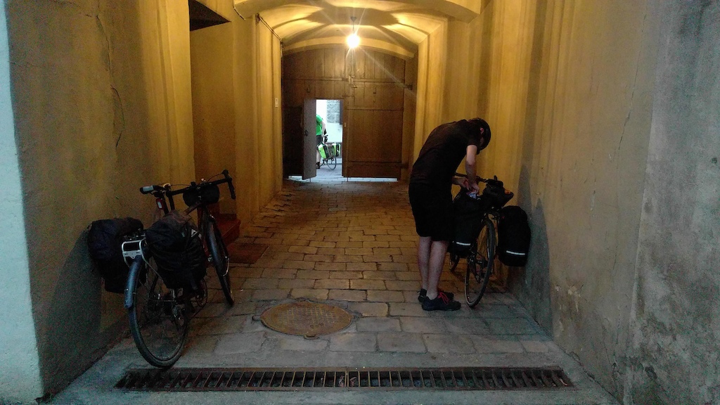From there there’s a tiny 2 car train to Bialystok in Poland. The demand for this train is apparently high but undersupplied. There were a total of 20 bikes on here, including one tandem and plus a Burley trailer. Two of ours ended up dismantled on some seats and others were stacked horizontally in piles. Bialystok involved a 2 hour layover so we enjoyed lunch in what turned out to be a pretty charming place.
