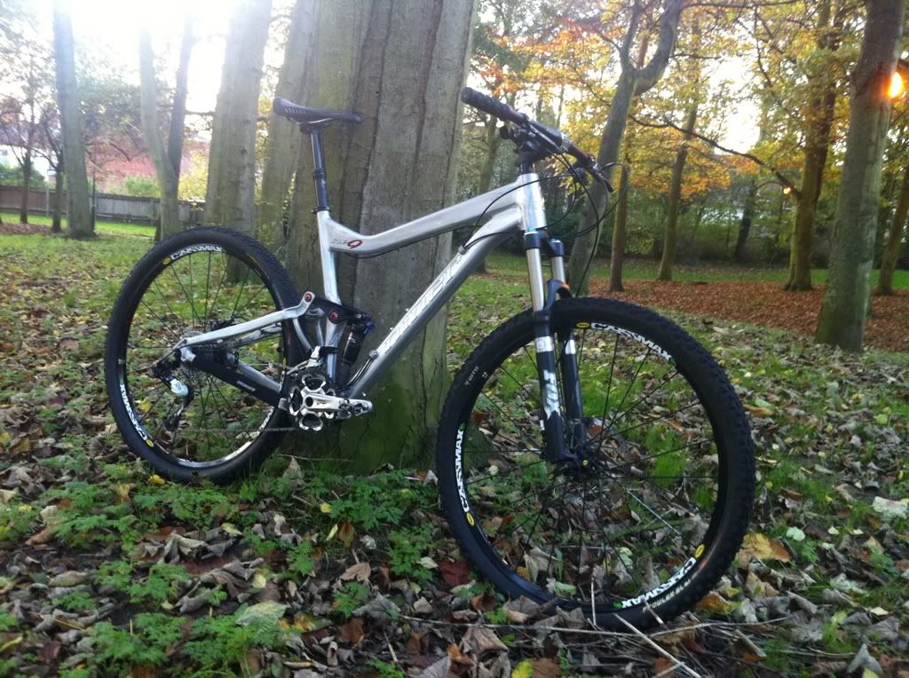 The Build: Alloy frame, Fox RP2 shock, full Deore kit, Hope/Stans Crest Wheels, Reba fork, Maxxis Ardent/Crossmark tyres.