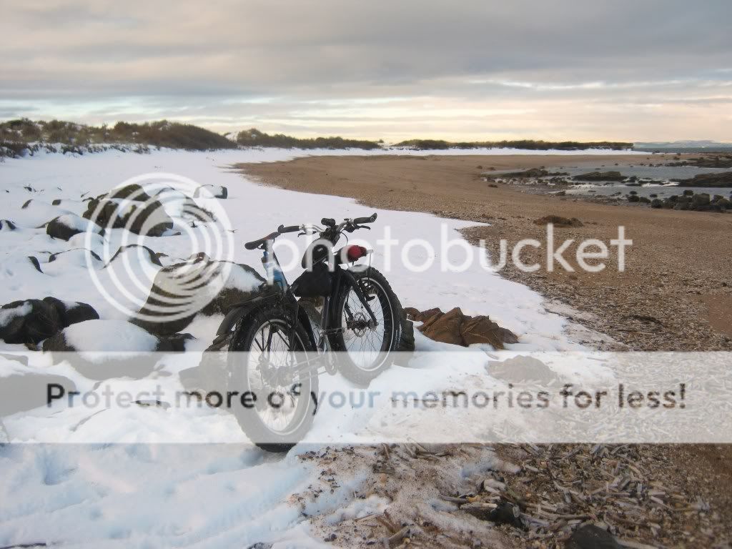 This weather opens up some new riding possibilities - namely on sand. As it is bloody freezing, riding along the top of my local sand dunes becomes possible, and bloody good it is too! Nice 2 mile rollercoaster ride with views over to Arran. Lovely.
