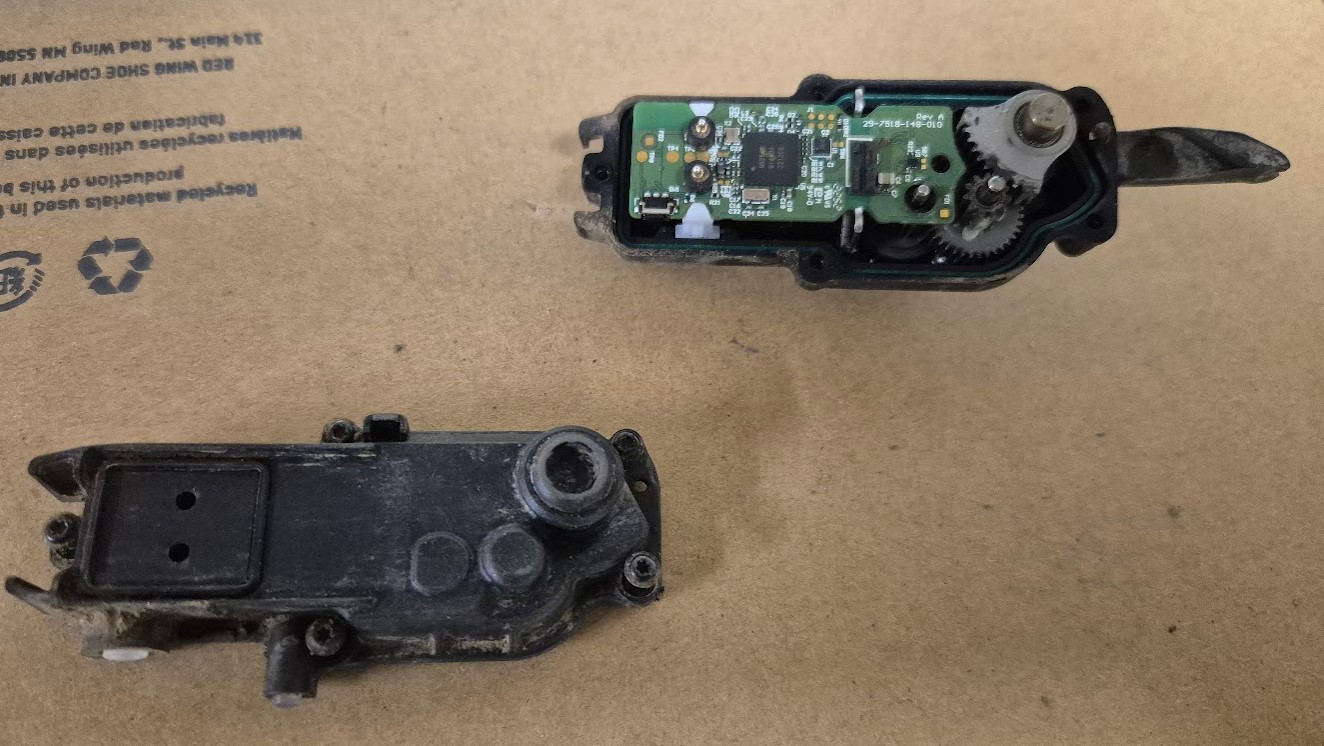 17) Reverse the steps to re-assemble. Be careful about the pogo pins seals and also gettign the first plate / mech spring back on.