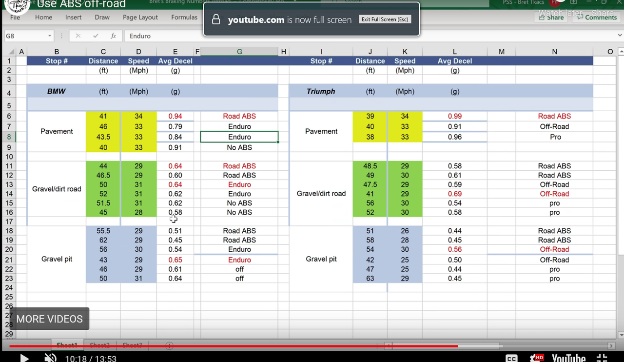 That video was interesting. Basically as a good / advanced rider he was able to stop with NO ABS better than with ABS on the worst off road surface. By a margin of 17%.