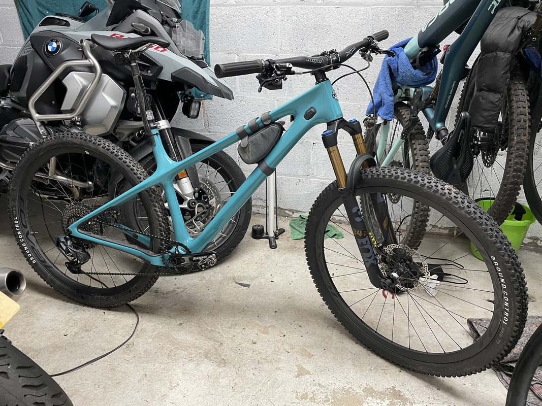 Sounds very similar to mine, I have turquoise frame ‘cos, er, Yeti and I used a Fox 34 Factory 130mm as they were cheap at wiggle. Got Hope Tech4 E4 front and X2 rear, GX AXS mech/Shifter, AXS post but then went Hope Headset/Bars/Stem/Crankset, which took a lot of willpower to not order in purple. I’m using Roval Control 6B carbon wheels and Specialized Ground Control 2.4 tyres, although it’ll take 2.6.
