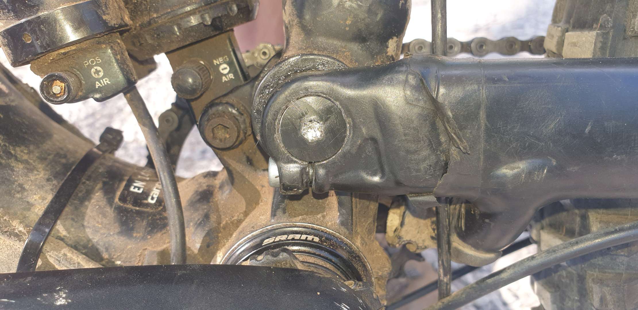 The crazed weld/paint is some raggedy tape on the frame. All good there.