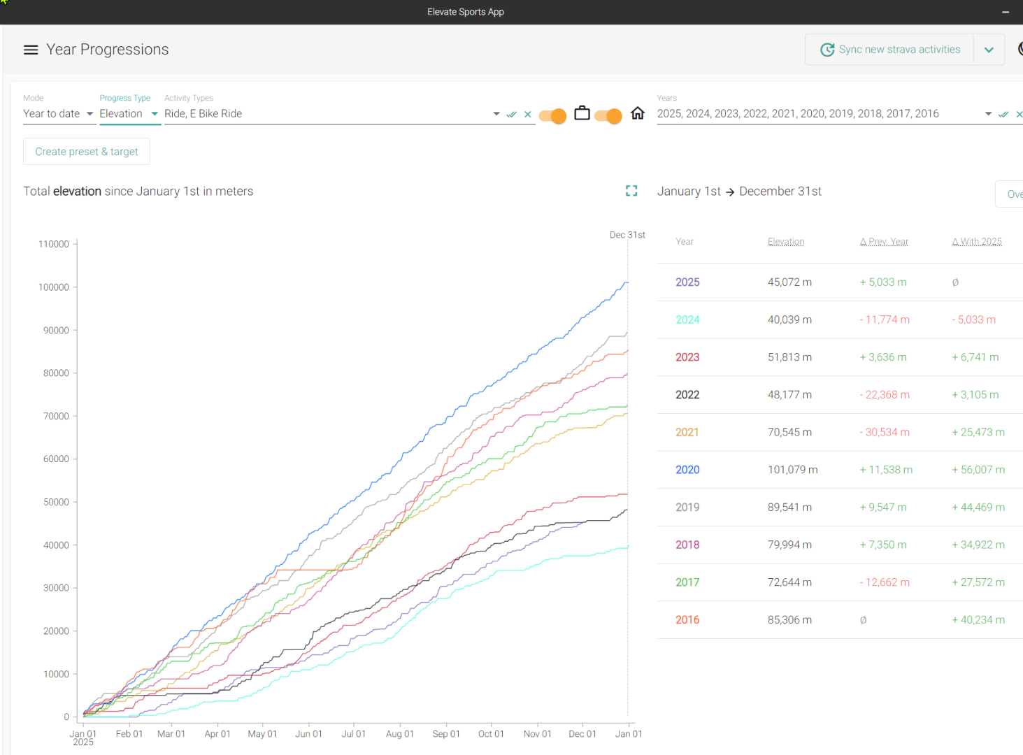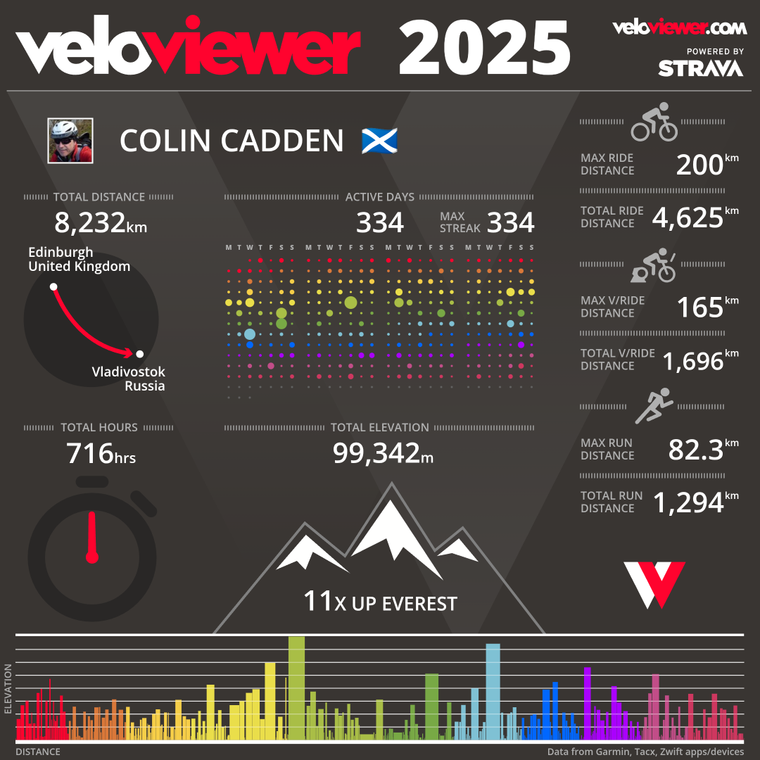 It's December 3rd and I've already exceeded my distance and elevation for December 2024, so monitoring stats has some value.... but the RidewithGPS app on my phone has been occasionally dropping out mid-ride since an Android update in the summer. I'm quite impressed by those Strava-derived visualisations posted above so I might hold my nose and start using that in 2026.