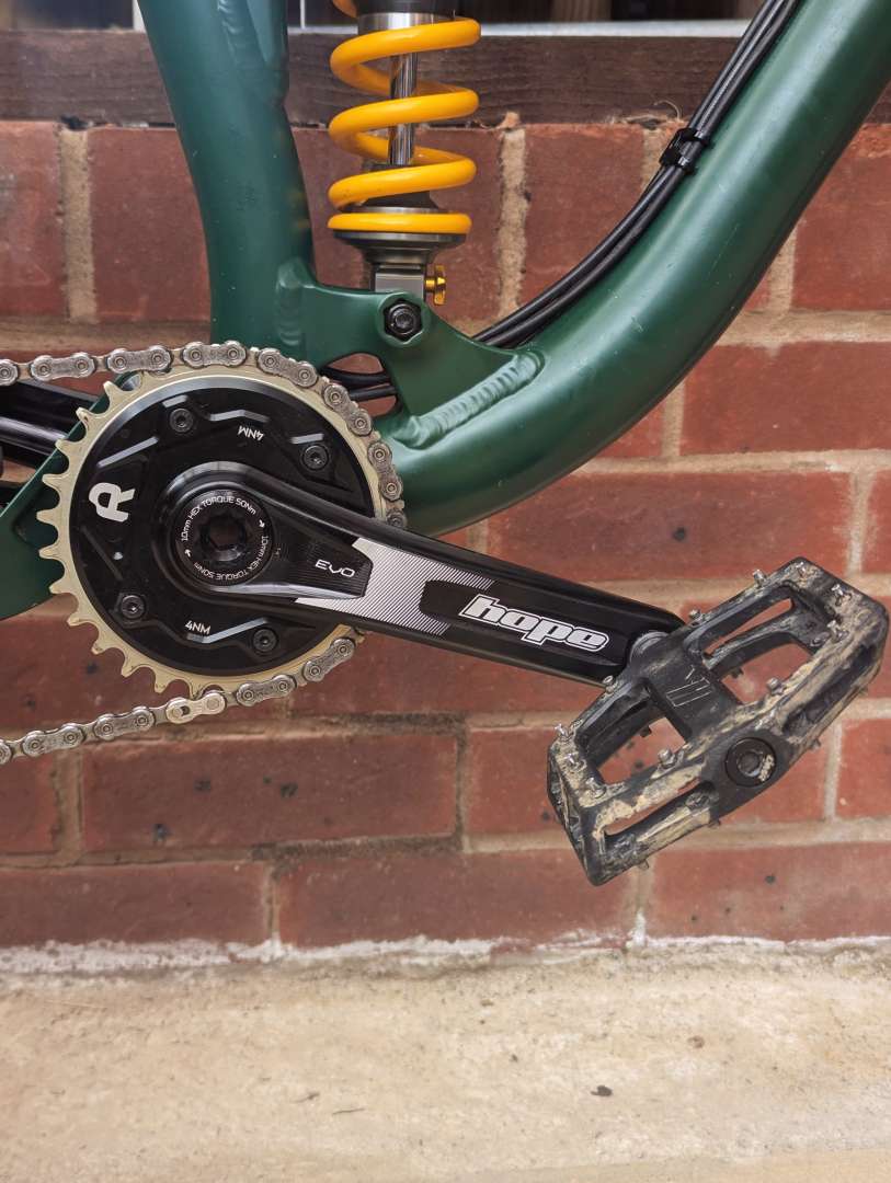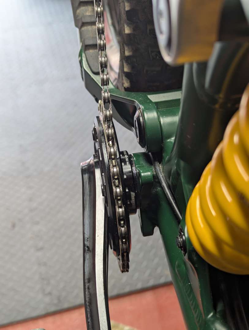 This has pushed the cranks and sprocket outboard. I can't use my chainguide because it doesn't reach and the chain line looks shocking.