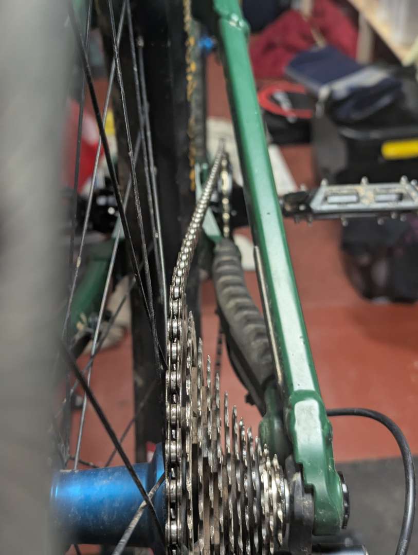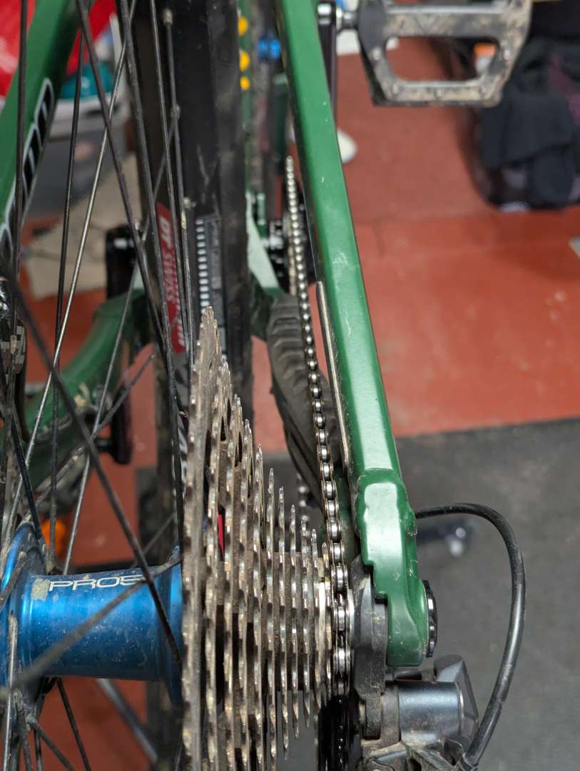 So 3mm spacers on each of the chain ring bolts, moving the ring inwards a tad, should set the chainline a little closer to the centre of the cassette. How close is the ring now to the chainstay?