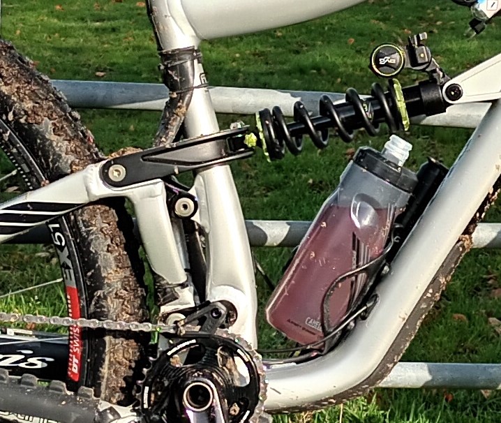 Vis keeping stones / crap off the upper link; I fitted a length of old inner tube over the link, from the back of the seat tube to further down the swing arm/rear triangle. It seems to keep everything out of the nut cracker area.