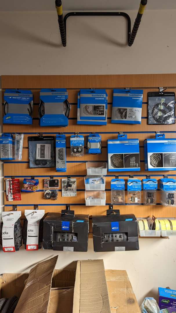 Luckily, not much anymore. I have a mass clearout when the workshop gets toward capacity but its the usual stuff I end up giving away/selling/throwing out mentioned above. Tyres, wheels, used chainrings and cassettes, bits of new chain etc. I always seem to end up with an unhealthy amount of grips knocking about. I do think I'm getting more ruthless with it all and can identify those bits that I'll never use ever again before they sit in a box for 5 years on the shelf (that said, I'm sure I'll definitely use that 27.5 Maxxis Shorty thats been hanging around for about 6 years now and still has the tags on it!).