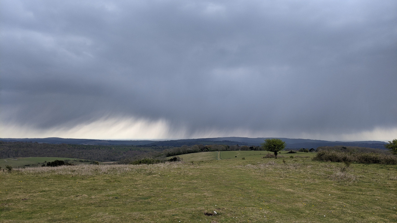 Weather was good apart from one short, sharp shower that managed to turn the rock-hard ground into a series of slushy puddles holding sticky mud that then stuck on the bike and made the tyres like ice until they cleared!
