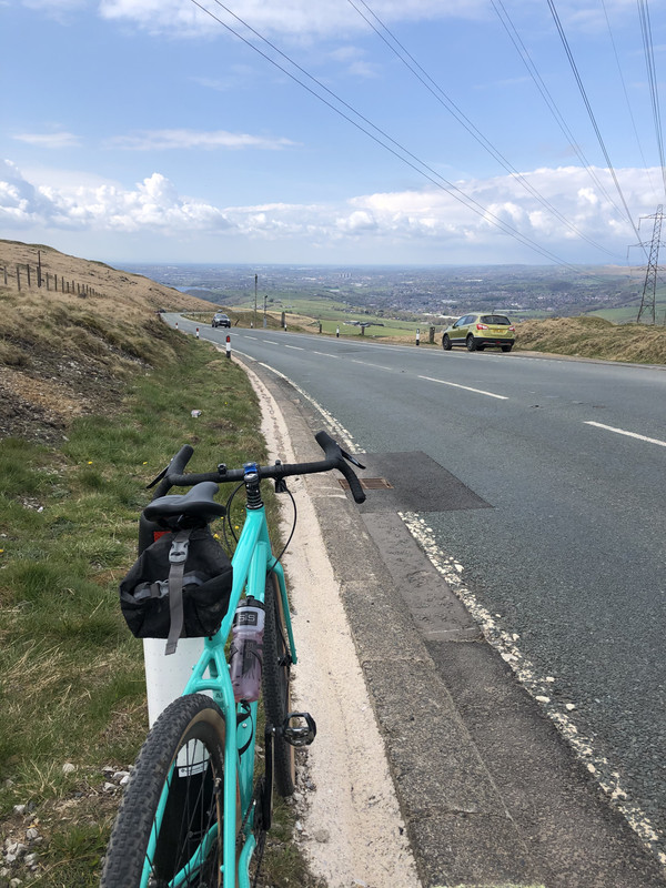 A cracker of a ride this morning, up over Sharnyford, then on to Mytholmroyd, up over Cragg Vale to Blackstone Edge (the longest climb in England) down to Littleborough and back home via Rochdale and Whitworth. 36 miles and 2703 ft of ascent. The tyres did grab a bit so I’m thinking of swapping them out for an easier roller. Happy Trails folks.