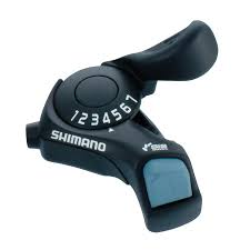 Rapidfire, but you need to teach them to lock their thumbs and rotate the wrist to get the necessary torque. Thumbshifters were popular too.
