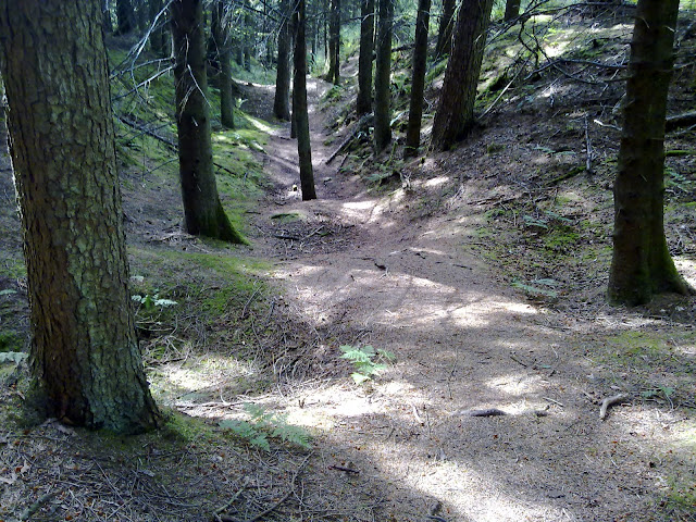 On my way home I passed Stockhill and could not resist stopping for a quick blast around Goblins Secret. But I came across the forestry boys who said they were thinning another part of the wood. I begged them not to plough though my trails but I don't hold out much hope.