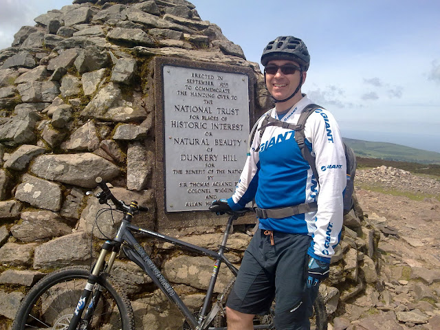 OK; so we rode out of Minehead, up a very steep forest track onto Wootten Common and then down the extremely-loose-and-hairy-at-speed sunken roadway into Wootten Courtney. Than on a sunken offroad lane to the west of Dunkery, turning west to climb up the summit - overall, a very reasonable way to climb this great 500m-ish lump.