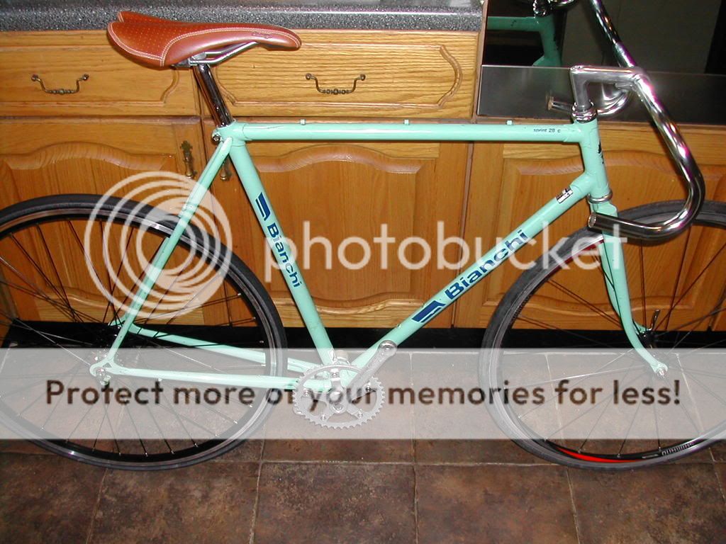 Bit of a dilemna about the tape as I like the shiny bars, do I keep em naked, or half tape them? Plus do I use brown tape or Bianchi green/blue colour?