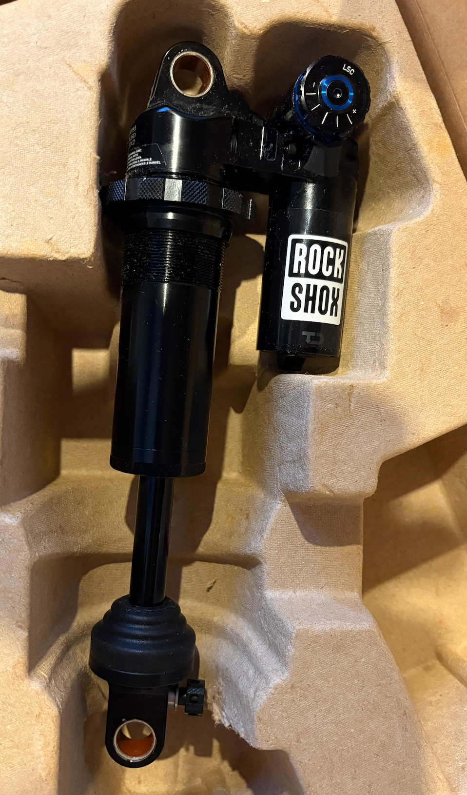 Well that's arrived. At a very good price even after customs and RM "Handling charge" which appears to be storage costs for holding onto it for a few days. Aways it's no longer being held hostage, and the bike and the shock are off to Sprung tomorrow where it shall be joined by a spring and the know how needed to set it up, so I can forget it.