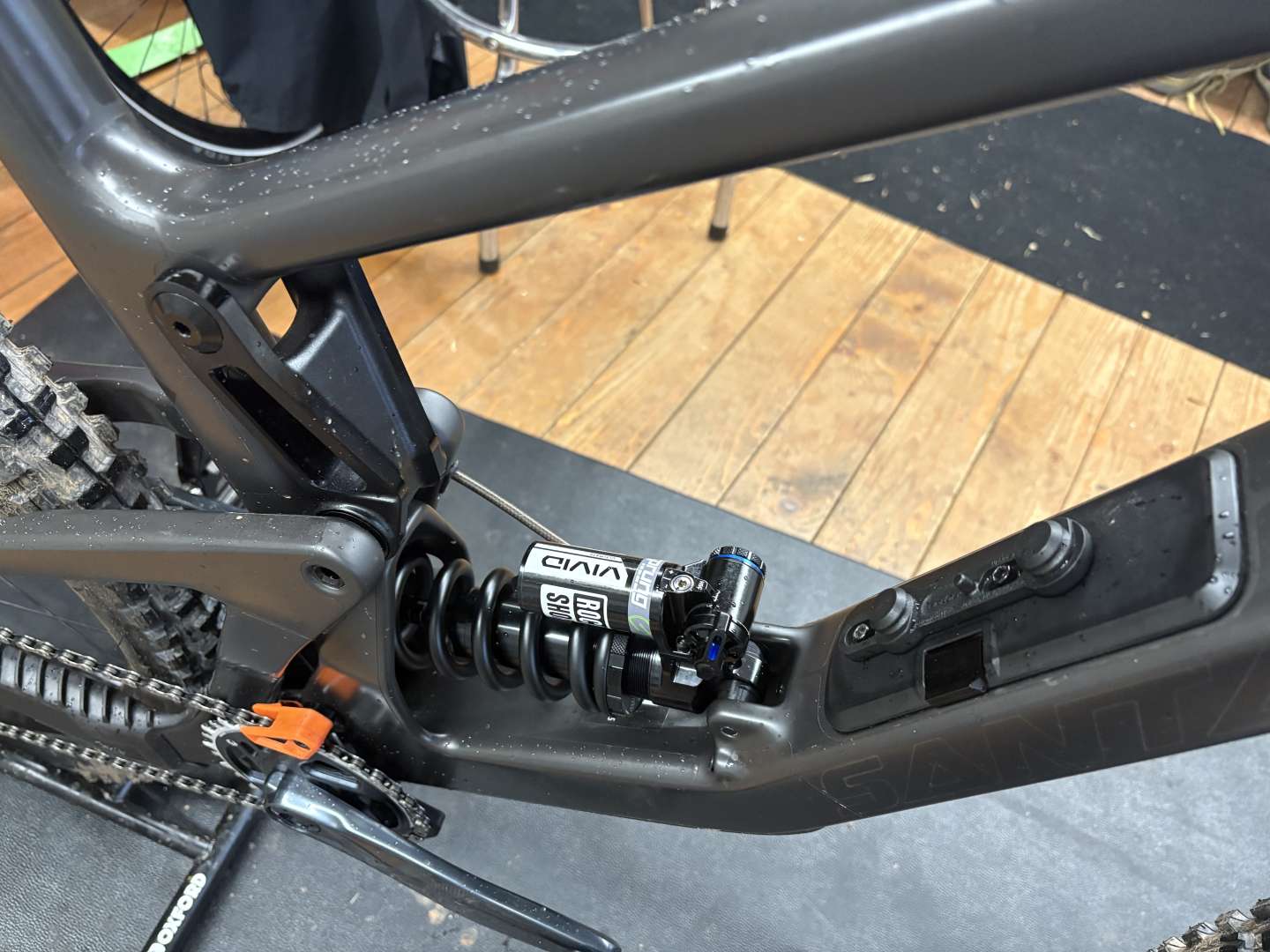 Setup feels amazing, brand new hardware lathe'd on site, and perfectly set up for my weight and riding "style". Shame the roads were all flooded on the 30 min drive through the FOD. No way I'm riding this bike there until it dries up at least a little bit!