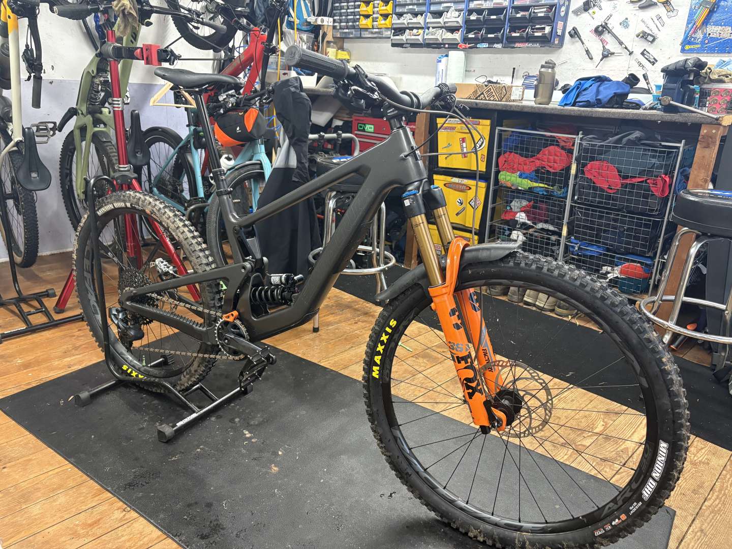 I'm a fan of Eagle AXS. Not a fan of SRAM brakes so swapped to my MT7s with posh levers. The Lyrik was fine but I kind of had a spare 36 with a posh new glide core air shaft so that obviously happened. The wheels have cushcore trail fitted (which I prefer to the Pro), dumped the reverb and (just) managed to fit a 210mm v3 OneUp. And a used but not that beaten up OneUp Bash.