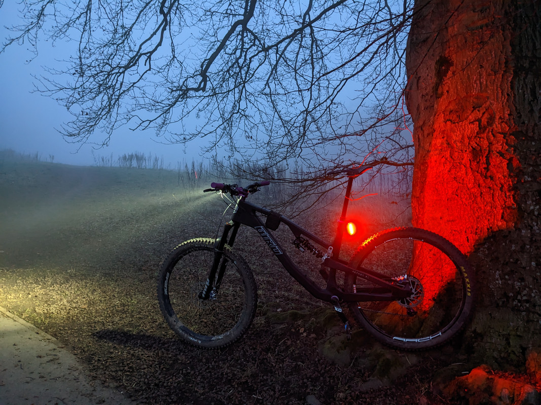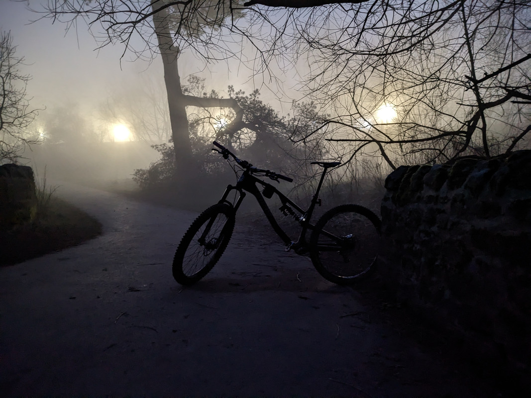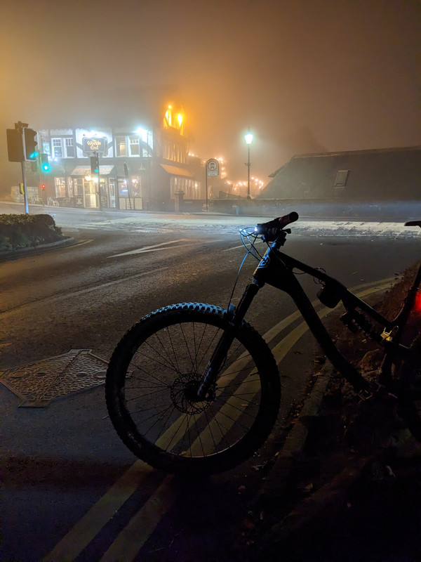 It was definitely more artistic than artifact this evening! Can't really tell from the photos but the fog was pea soup. Actually ended up with my dinky little commute light doing all the work as even on low my proper one meant you couldn't see anything but a wall of white.