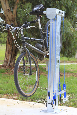 Suggestions: Hang a (genuinely) interesting or vintage bike on a wall or adapted as display might generate a bit of local chat - Chain a track pump/tools to the wall outside?