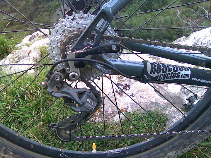 [b]Downhill:[/b] I took it to the "Cheddar Rock Garden" (which I have only done before on my TranceX), doing the full length twice. Obviously it's a fair bit slower which makes it more tricky to use momentum through the rough, but it was fine. Where the rocks were more intermittent, I was able to float the bike quite easily over the worst bits. The front feels sharp, lower overall, less banzaii than the Mongoose but OK. The longer TT seemed to put more bike out front when you want it. But I did notice the leg fatigue compared with rear suspension - it's quite a rough trail! I'm not entirely sure how long I can run the fork so I'm sticking to 110mm. On the smooth twisty singletrack of the Purbecks it seemed manoeuvrable enough too.