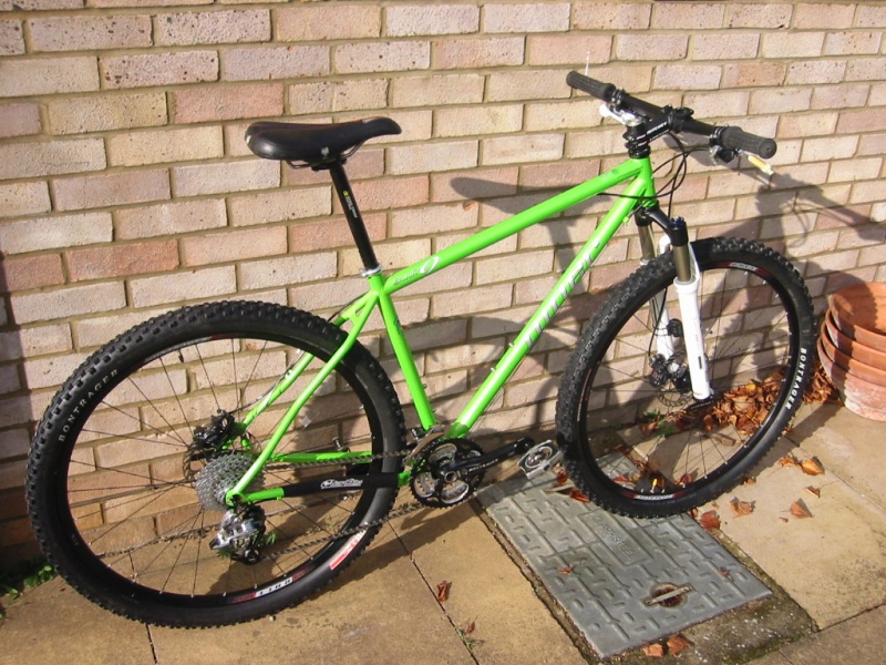 On the upside it is the fastest and most comfortable hardtail I've ever ridden with a real zing to the ride. Only good full suss bikes roll over stuff better than this and the combination of big wheels and top-end springy steel make it a real joy to ride.
