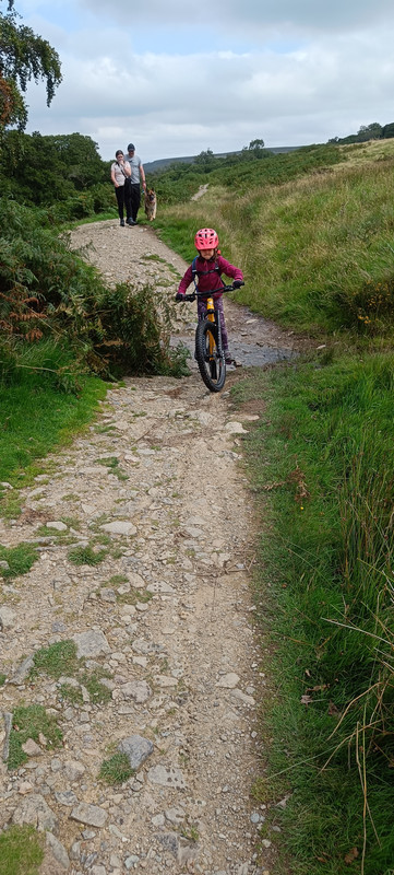 Eldest is 6 and on a rigid 20" with 2.1 small block 8s, she's reasonably capable going down but gets bored and tired on a long xc type ride. We've just done Askrigg to Castle Bolton in the Dales, which was probably her limit of pedalling at about 7 miles and 700ft climbing (we skipped the road climb out of Askrigg).