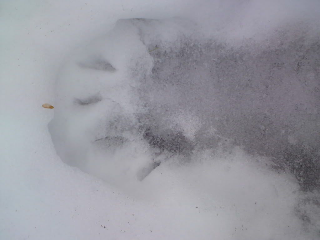 There are reports that the Scottish Wildcat is in Carron Valley - not sure of any sightings but prints and droppings confirm this (apparently) - perhaps it was a Wildcat that made the print and the melting snow has enlarged it?