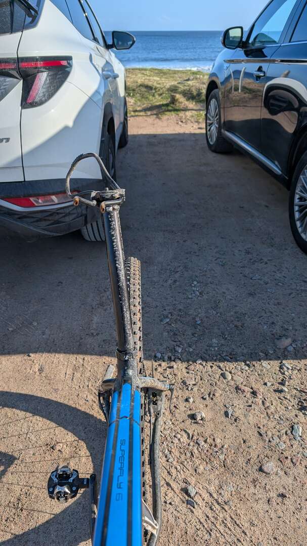 Thought I'd got away with it but the seatpost took the brunt also 😭 I think the 100mm insertion might have saved the frame at least, and thank god it wasn't the road bike!