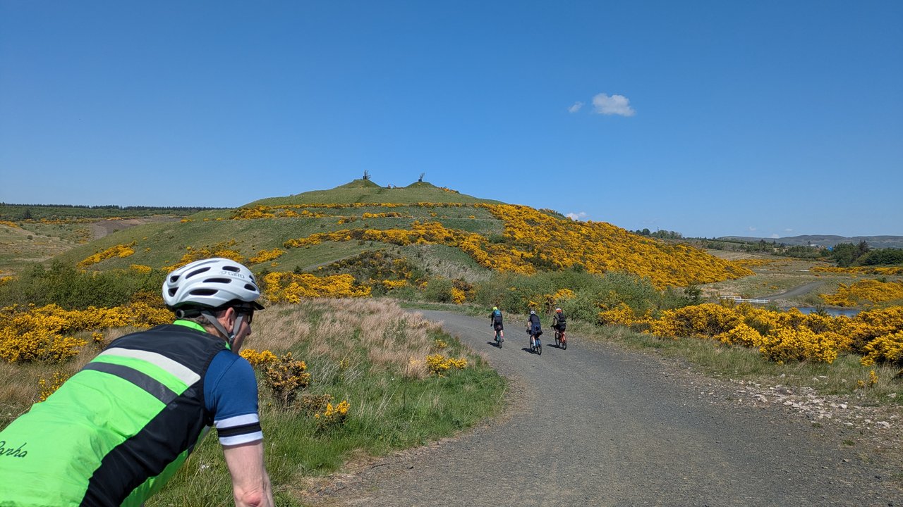 The gorse was in full bloom and looked and smelt amazing as we continued on to Loch Ore.ย The gravel claimed a couple of punctures which slowed us down but allowed a little breather and refreshments, it was now getting pretty warm.ย ย