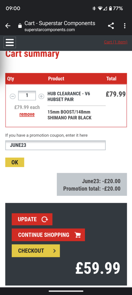 Ah no worries. I ordered hubs and spokes last night after getting the email so thought I might have missed a trick!