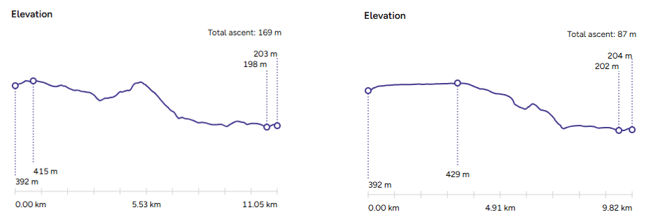 Not that much difference in elevation but much quieter. And I hate that draggy climb along Rushup Edge and the right turn at Slackhall can be sketchy if you're waiting in the road for oncoming traffic - the visbility for traffic from behind is not great. Os maps route planning is great, except for the currently somewhat flakey snap to roads/paths function.