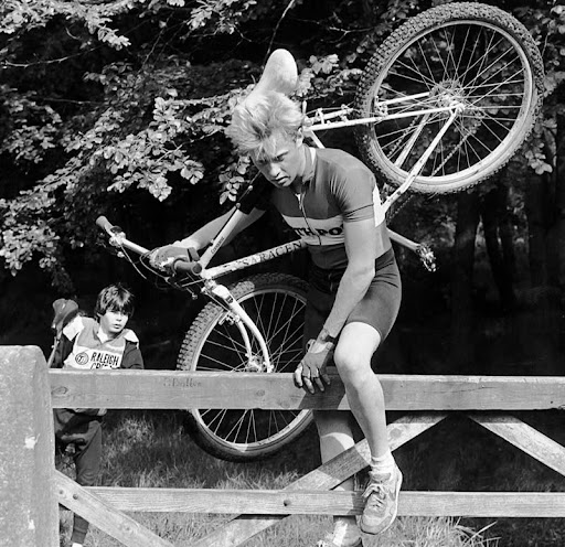 I'm just about old enough to remember most of it, I got properly into MTBing in 1993 when I was 16. Somewhere I've got some photos of me at Whipstakes Farm races, my mate on a fully rigid Marin with the matching purple forks and stem.