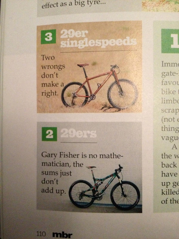 That's class. The glory days of insane MBR reviews seem to be past though. "We fitted a 140mm fork to the Inbred, which is too long. It rode like the fork was too long, so we're marking it down so the Orange can win".