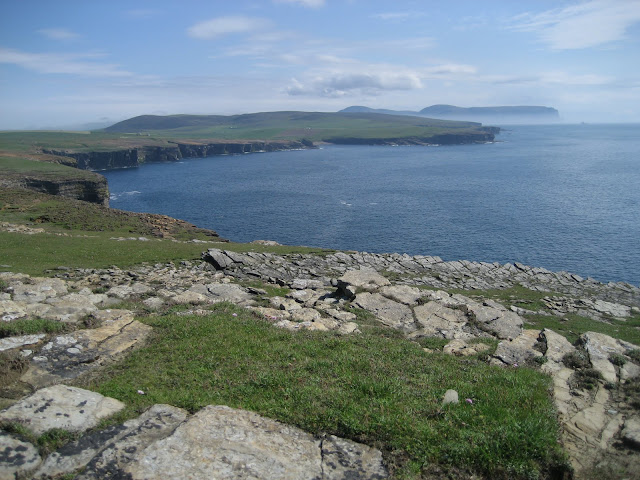 Ride from Skail to Yesnaby to the Black Craig to Stromness. Chips on the pier. Top day.