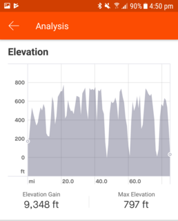 Your maths is wrong IHN - assuming you started and finsihed in the same place half of that 27 miles would be downhill therefore you did 140ft/mile. That make it feel a bit more 'pretty hilly' for you?! (fitter than you thought, eh!)