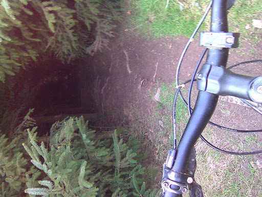 yeah when you get down to the gate go through then down/along the forest road straight ahead, go left up nother forest road, you get to a xroads -straight on goes down toward Tynings, left climbs up to the grouse feeders. Trail dives into dense trees on the right -very dark!