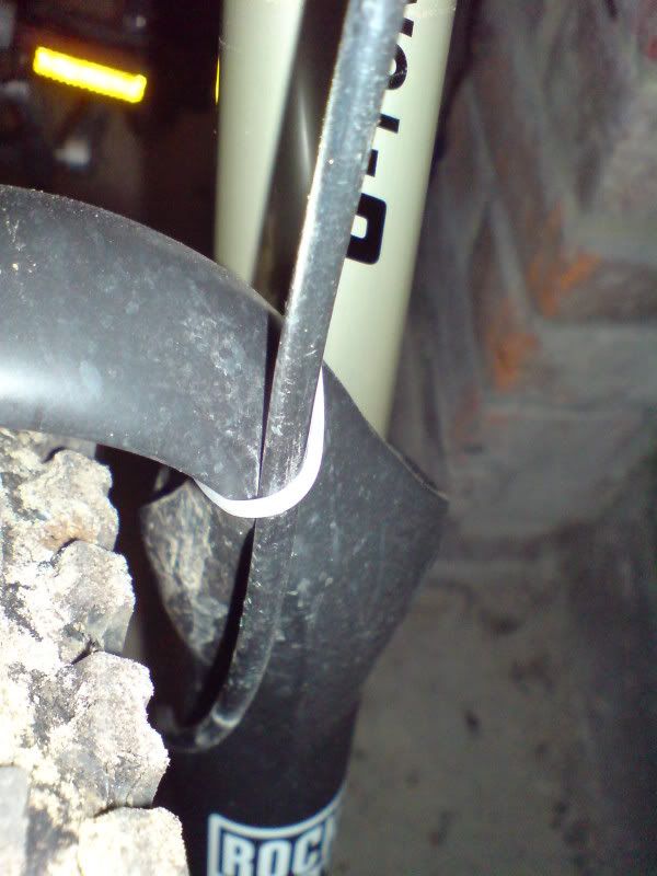 The cable routing seems all wrong. From the handlebars the cable goes down the the fork bridge and is zip tied to a guide on the rear of the bridge. It then goes down the back of the fork to the caliper.