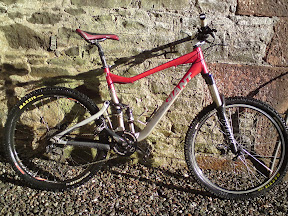 BTW. The bike is mentally fast and agile - not a blunder tank. The rear suspension out peforms the Fox fork for responsiveness which is going some. It's a grippy climber which responds to aggressive pedalling, and at 28lb it's ridable for enduros. It's probably at its fastest on rough pedally trails where you can sit into the suspension and attack the pedals, leaving all the HT riders in your dust. The Fox F120 QR fork is the main weak point IMO - it's too light and XC for the kind of knarly high-speed riding you end up doing on this thing. I absolutely love it.