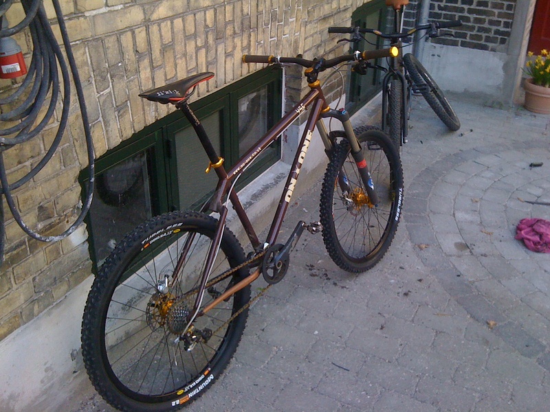 with Orange F8 fork.. great on the local gorse common.. especially on the more techy stuff around the military training areas.. like riding a stealth bomber..