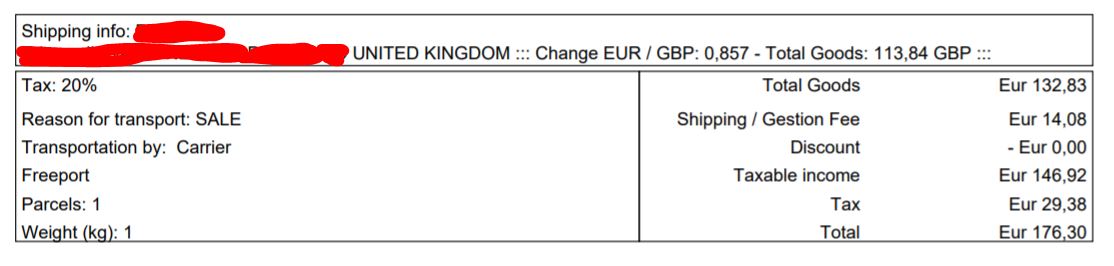 A refund on the VAT from Ridewill, but the item itself was 132.83 Euro before tax so theoretically below the £135 and even with the 14Euro postage should be below £135, so they won't.