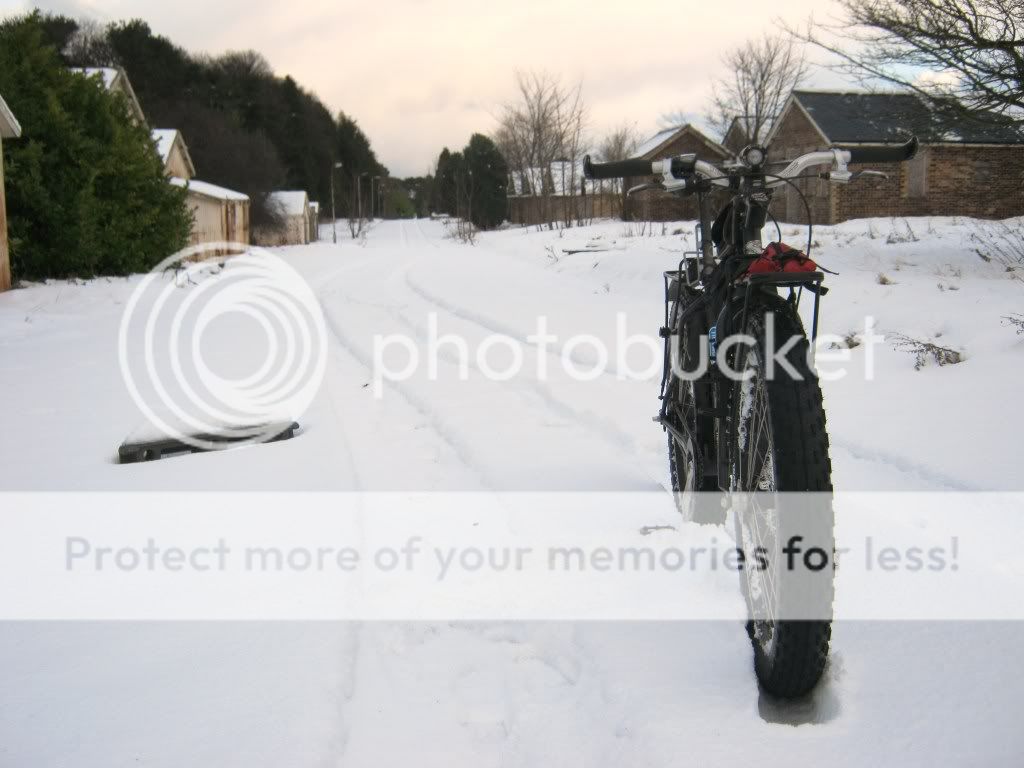 I gotta say Bruce that until today I was a bit sceptical like of your titanic sized bike. But TJ and I had studded tyres on but they were too thin for the slightly crusty snow. A real big - fat - floaty tyre; perfect!