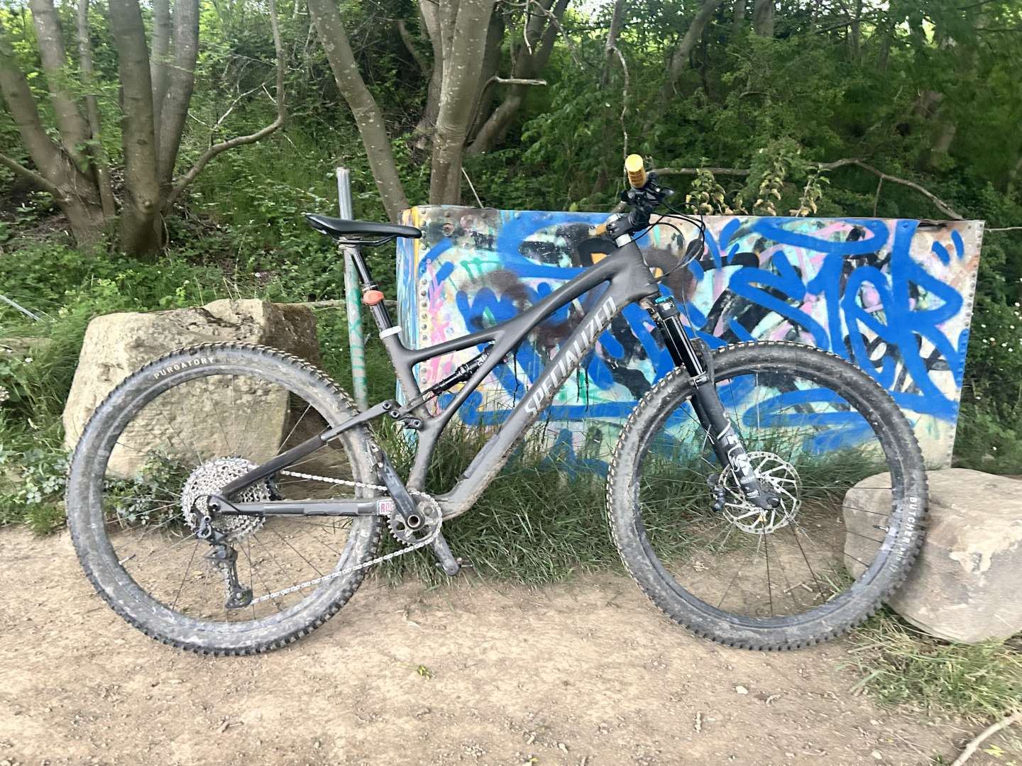 As above really, Fox 36s on the front and a FloatX on the back and 2 sets of wheels. I run Kryptotals in Enduro soft on the burly set and a set of Bontrager XR4s for the faster local stuff, although admittedly i could arguably use the Bontragers for everything at my skillset 😀
