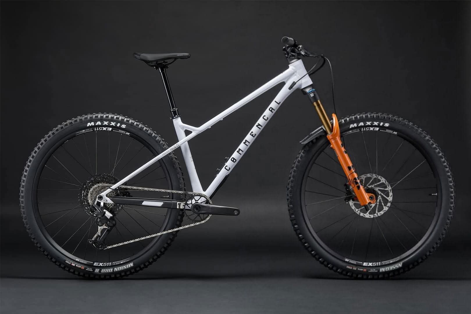 Orange Five Evo frame / Fox 36s at 150mm / Hope/Stans Flow wheels with Maxxis Assegai/High Roller / XTR brakes and drivetrain / dropper post / Renthal bar & stem / comfy WTB seat and squidgy grips