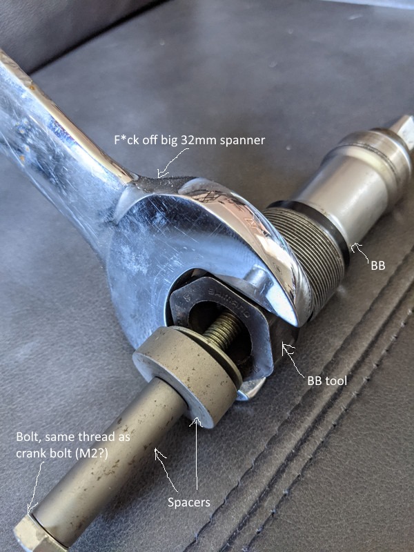 Spurred by this, went to work and managed to get the ST BB (not hole through, just bolt thread) out of my M2. I might have been turning it the wrong way before, and was definitely using a standalone tool before. This time used a BBB tool with integrated bolt - worked a treat...