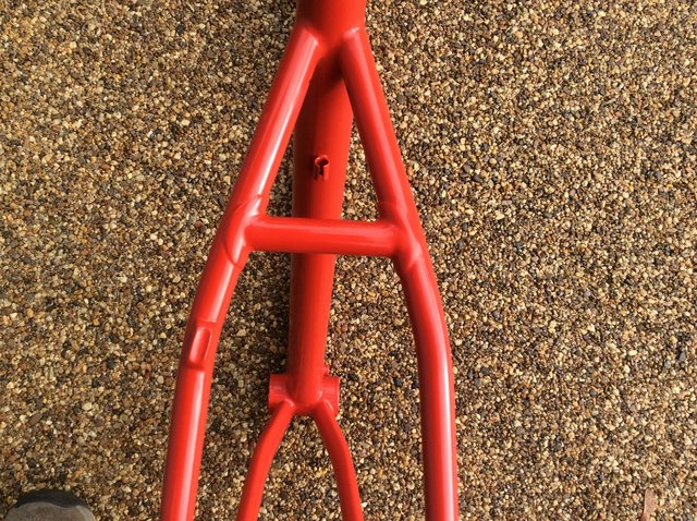 This is temporary as long term I will get a new chainstay fitted and the frame and forks refinished. As Andy at Stooge says, only 100 of these were made , so worth keeping it as I do enjoy riding it.