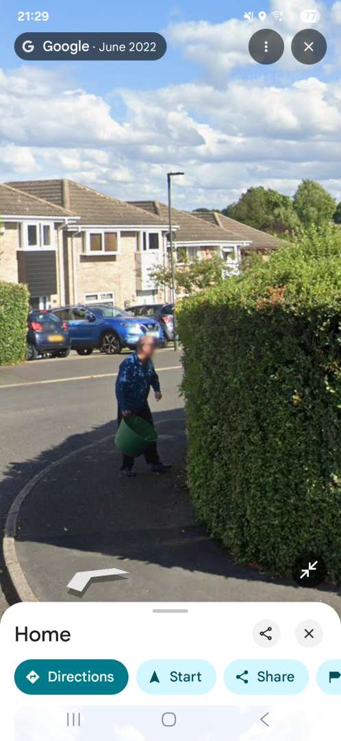 Can see my Dad is in the garden of his house, the camera on the car roof was high enough to see over the garden gate.
