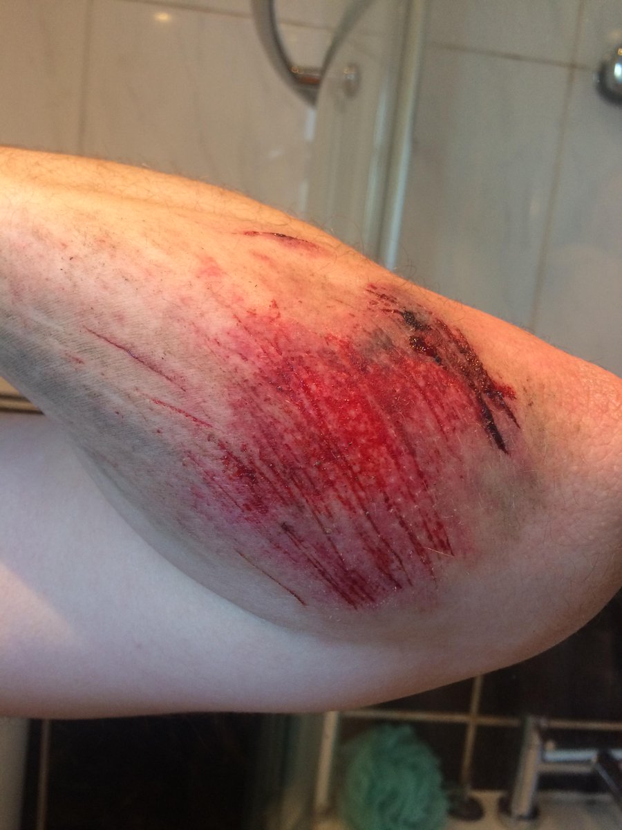 no, that's a "speed scrape" you see at eBike speeds it means that any small amount of dust or debris in the air, like kicked up from a wheel, can become highly abrasive, if he'd been on a de-restricted machine he might have started burning up!